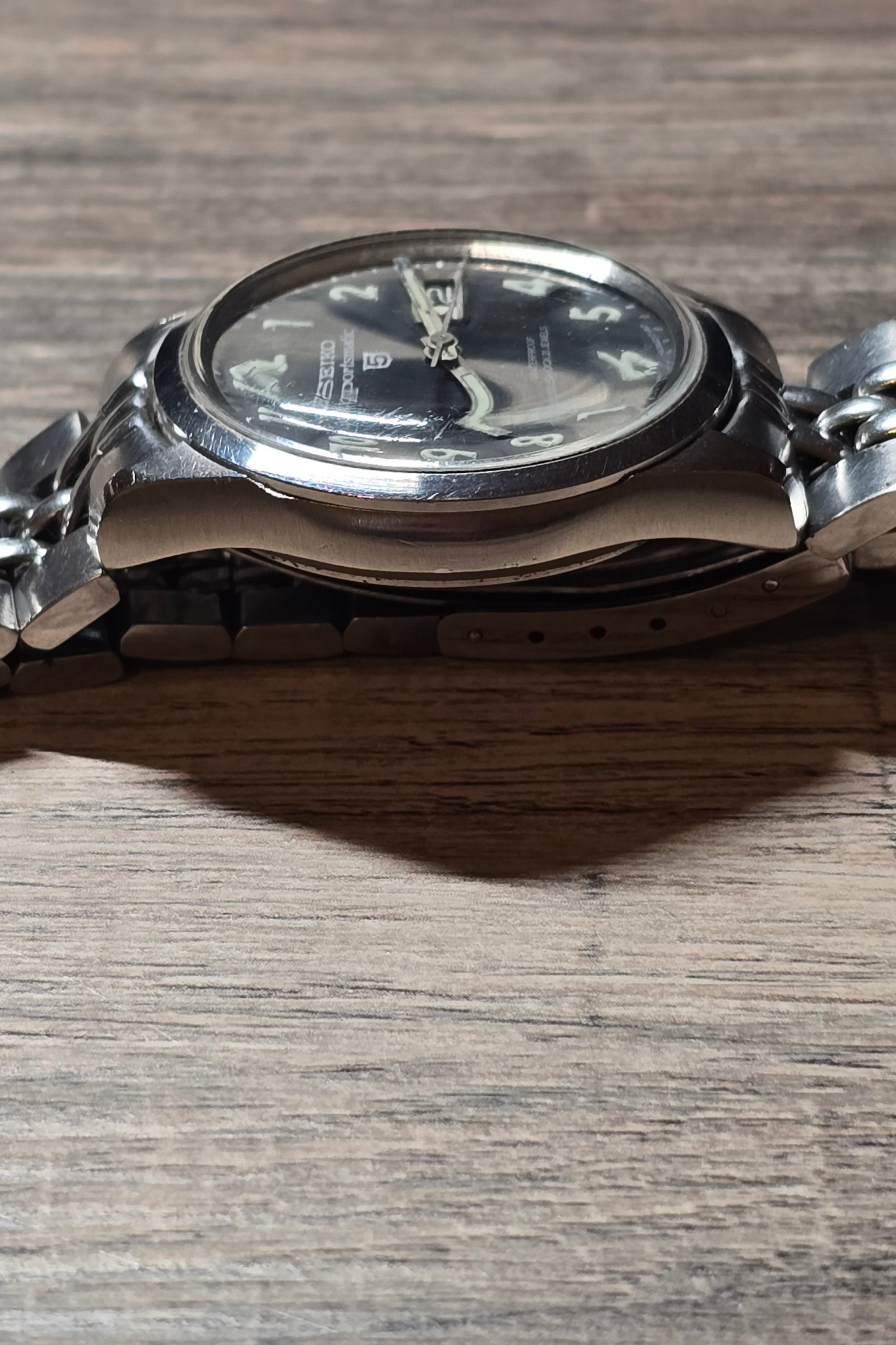 Strap: Aftermarket genuine Seiko stainless steel bracelet 18mm taper to 16mm