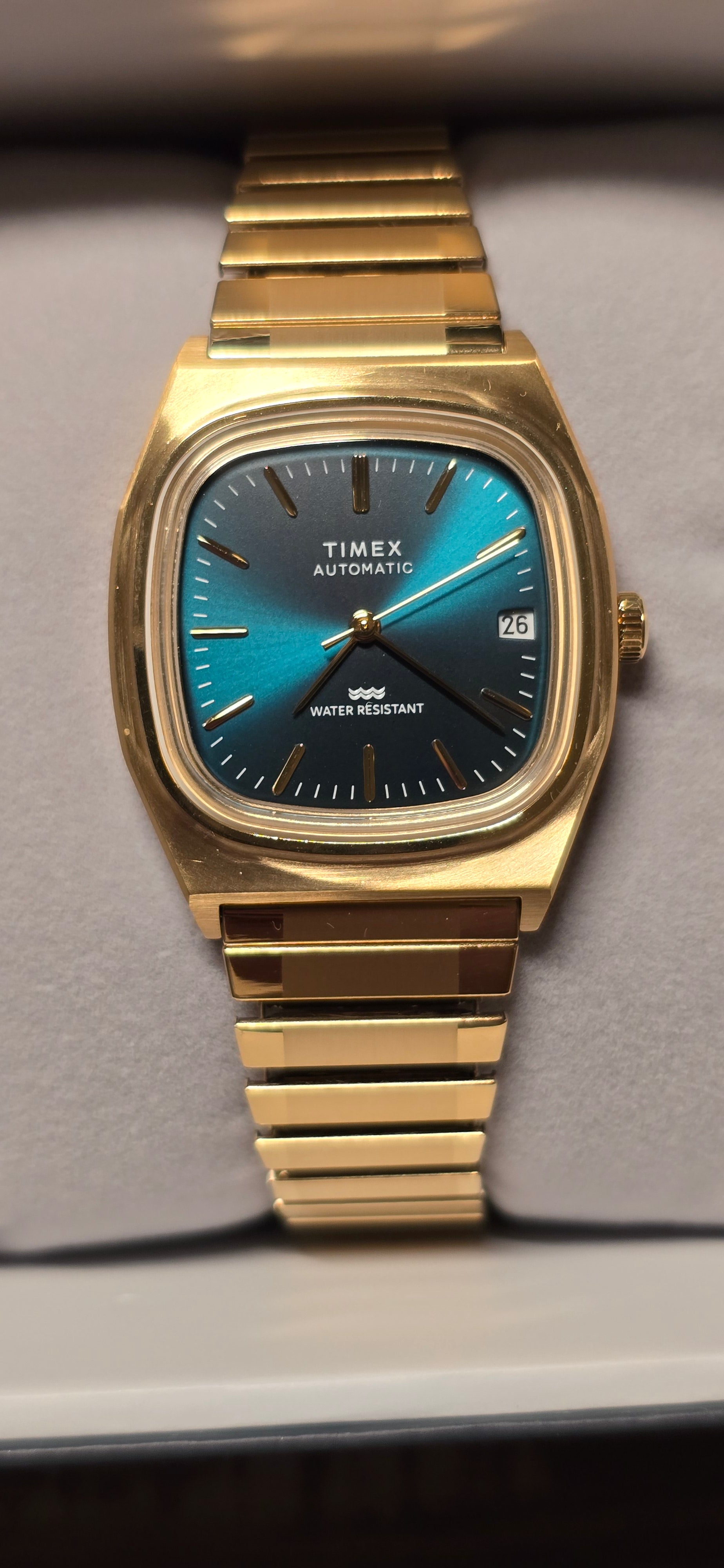 Being born in 1983 myself, I naturally have a soft spot for this watch, but even setting that aside, Timex has been putting out some real gems lately and this E-Series classis TV style reissue is one of their best. The new green dial and gold case version you see here is absolutely gorgeous. It might be Timex best color combo yet in the 1983 E line just in time for the holidays! What I love most is how well balanced the design feels. It captures the vintage charm perfectly while still offering modern reliability. Many reissues drift away from the original designs, but this one stays remarkably true to the 1983 E-Series, right down to the TV style case, acrylic crystal, and retro stretch bracelet. If you have always wanted a cool vintage watch but have hesitated because of the fragility that comes with older pieces, this is the perfect answer. It gives you the full retro vibe without the worry. With the demand as high as it's been, I'd suggest grabbing one while you still can! The vintage vibes are strong with this one!