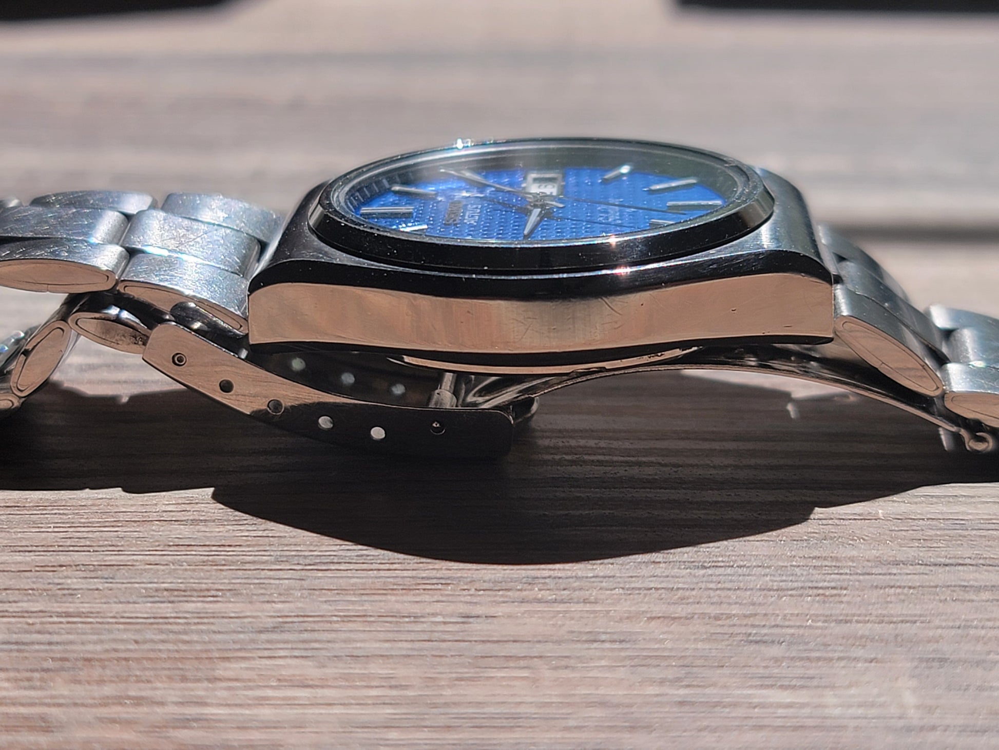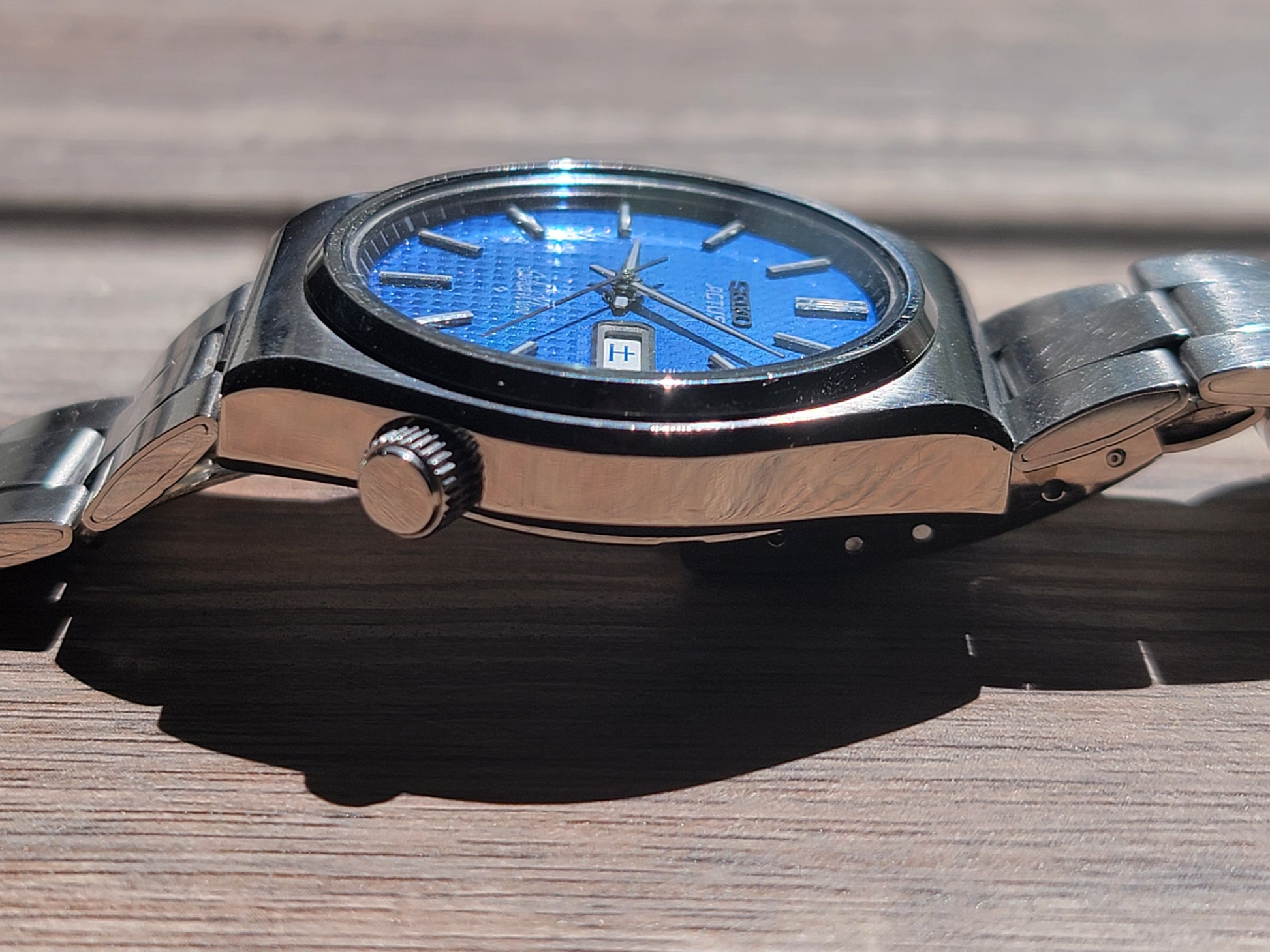 In my opinion some of the most underrates vintage watches out there are the Seiko SilverWave series. As on of Seiko's first water resistant watches, these SilverWave variants make for a fantastic everyday vintage wear. The come in a great modern size, are robust, beautiful dials, and offer incredible value. This special blue carbon dial variant is the rarest and as a JDM model it is becoming extremely harder to find in this mint condition and with the original Actus bracelet. The way the blue dial and indices play with the light, you would think it is almost at Grand Seiko level, but for a fraction of the price. In mint condition, this watch will serve you well as your first vintage timepiece or if your a serious Seiko collector, this one is a must have in your collection. We don't get this rare blue dial variant through very often, so jump on it as it won't be in the shop for long!