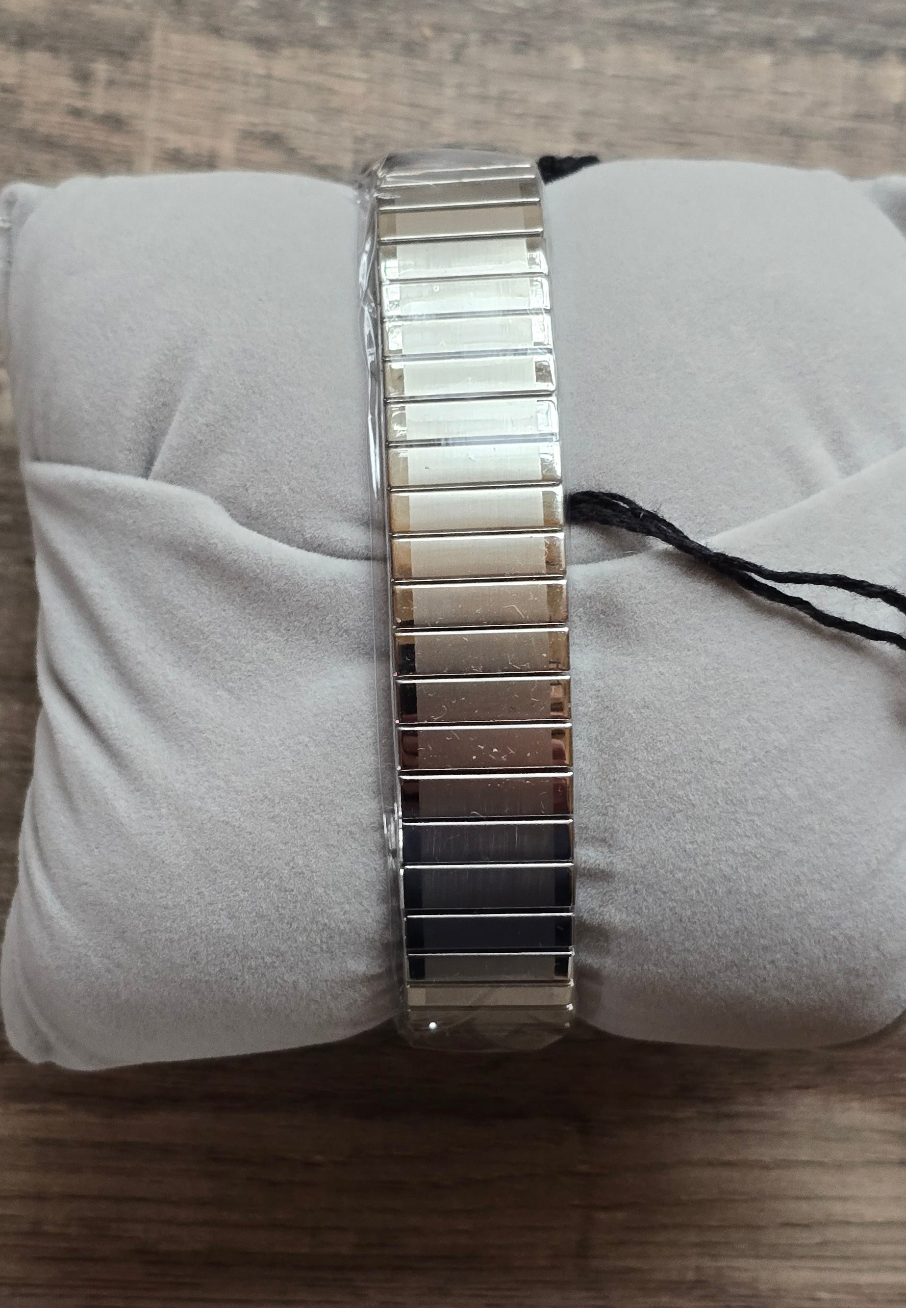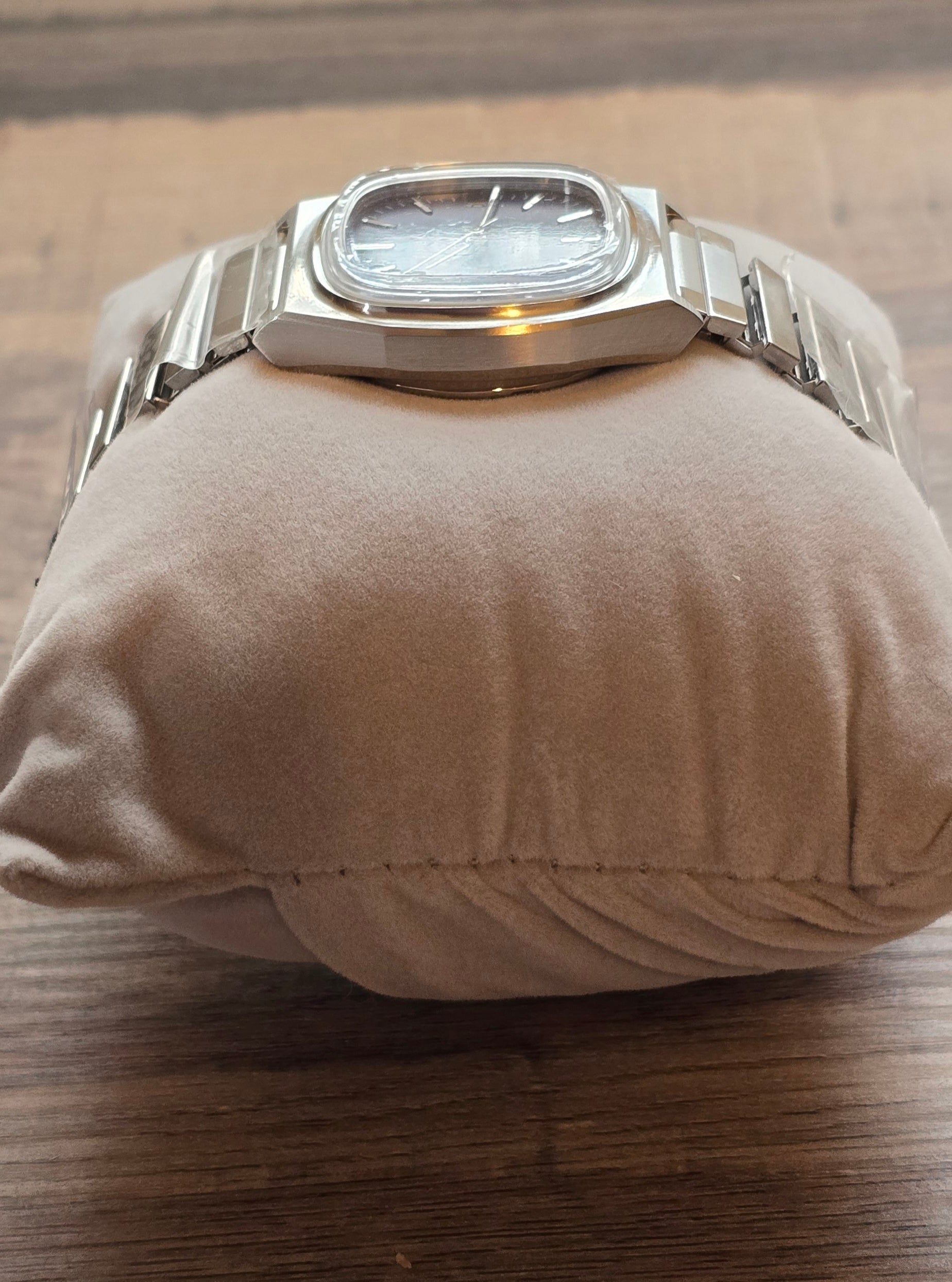 Here we have a currently sold our BNIB Timex E Series 1983 reissue in the hard to get Navy Blue dial colorway. This is a classic 1970's design created as a modern version of the original vintage Timex E series. First released in 1983, the Timex Automatic E-Line is a classic dress watch best known for it's rounded square "TV Dial" case shape. Keeping to the vintage sizing, but with some modern updates, it wears beautifully on the wrist and stays very faithful to the original design. This modern color variation pairs a brushed and polished stainless steel case with a matching stretch bracelet that uses Timex's Perfect Fit technology for added comfort. Inside beats the reliable Miyota caliber 8215 automatic movement, featuring 21 jewels. The watch is topped with a vintage style flat acrylic crustal, giving it an authentic retro feel. The Blue dial is clean and balanced, with applied hour makers, a printed minute track, and a neatly integrated date window at 3 o'clock.